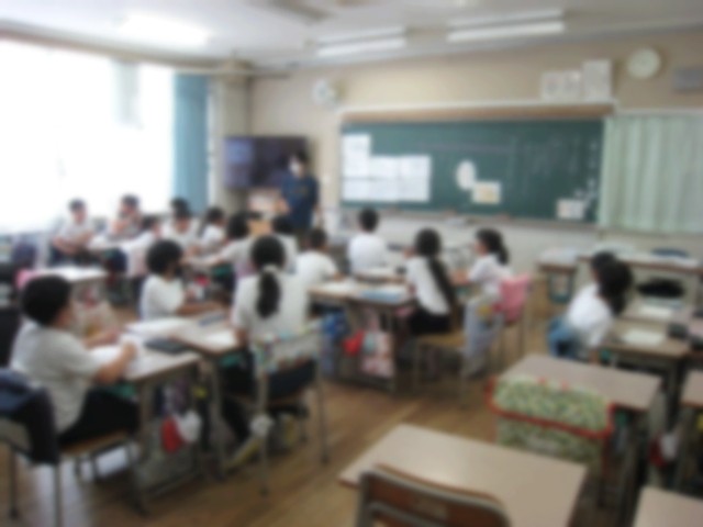 写真は、4年生、5年生、6年生教室において実施した授業の様子です。
