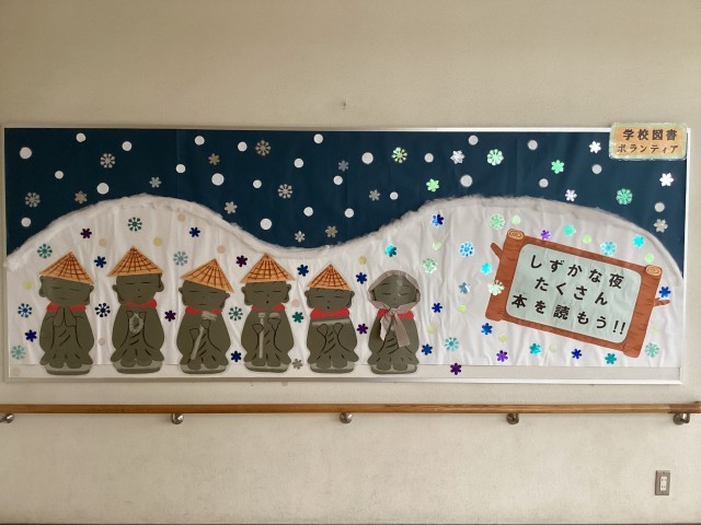 本校2階にある掲示物です。学校図書ボランティアの皆様が素敵な掲示物を作成してくださいました。