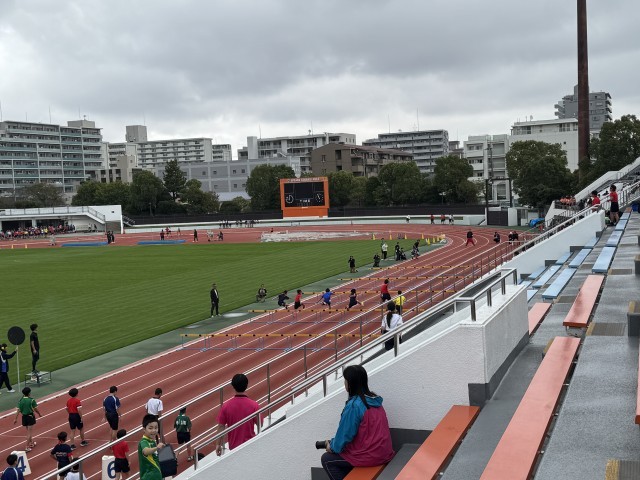 男子100m走と50mハードル走、必死にゴールを目指して力走です。
