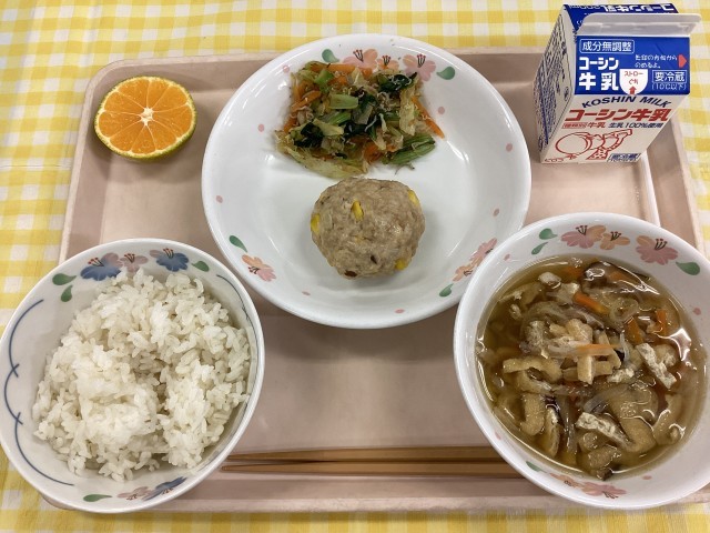 文化の日には各界の功労者に菊の勲章が贈られることから、菊は文化の日の象徴とされています。菊花蒸しは、肉団子のタネにとうもろこしをたくさん練り込んで丸めて、蒸した料理です。「おにくがおいしい!」「とうもろこしがあまい!!」といって、子どもたちはよく食べてくれました。