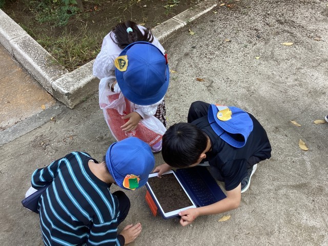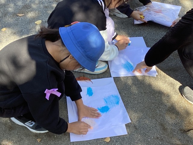 落ち葉のシャワーで遊んだり、いろいろな種類のどんぐりを見つけたり、見つけたものをタブレットで撮影したりしてたくさんの秋を見つけることができました。持ち物などのご協力、ありがとうございました。今後も学習は続くので子どもたちも楽しみにしています。