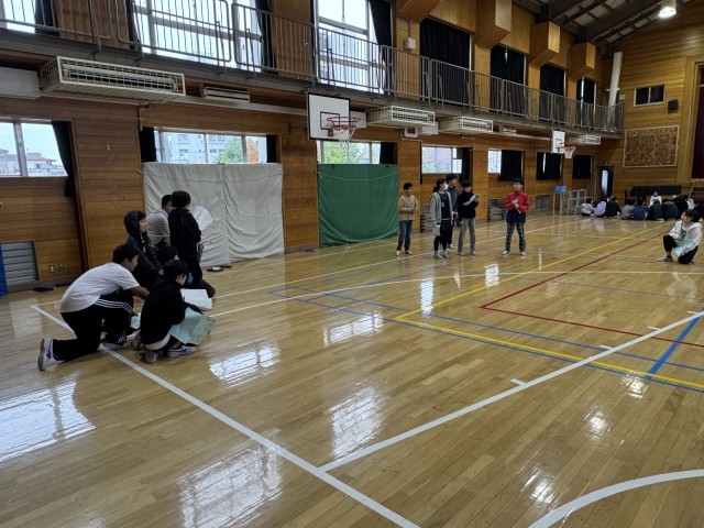 明日までは、1組が学級閉鎖なので、学校に来ている2・3組のみんなで小道具や大道具を作りました。