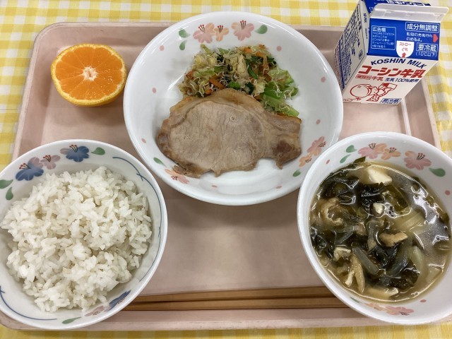 しょうが焼きの豚肉は、ロースを使っています。赤身と脂身のバランスがよく、旨味と甘味がある、しょうが焼きに適した部位です。お肉が大好きな子どもたちは、「やわらかい!」「あまくておいしい!」と、ご飯と一緒にもりもりと食べてくれました。
