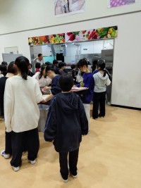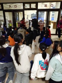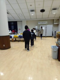 猪苗代湖を背に、入所式です。雪はちょっと少なめです。午後はそり遊び広場は使えるかな?