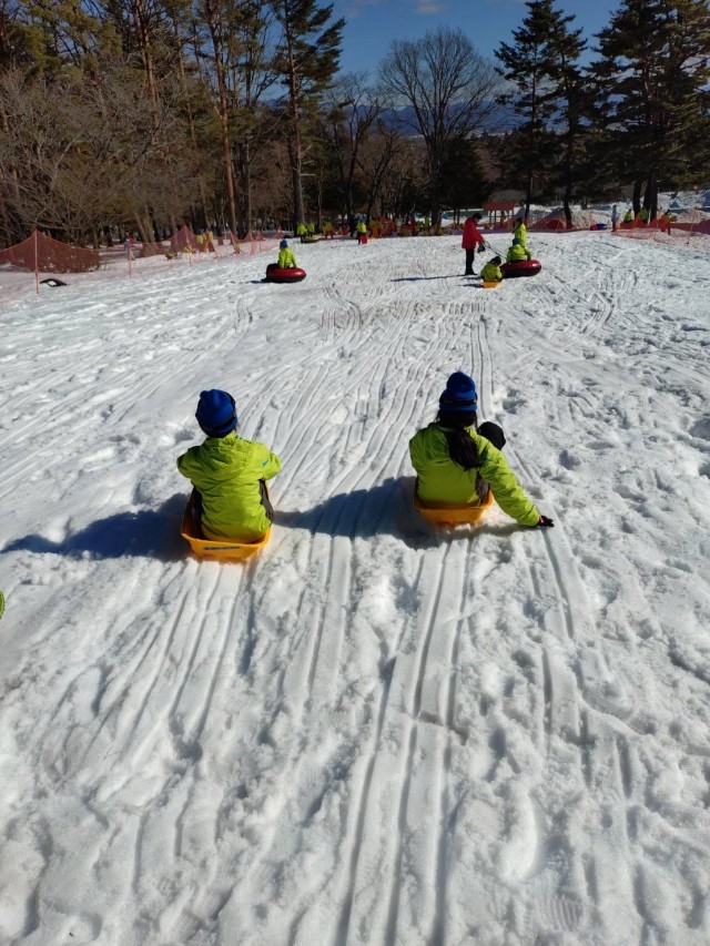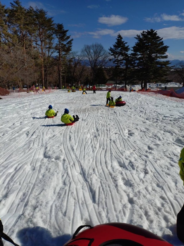 段々うまく滑れるようになってきました。日差しがあり、汗が出ます。