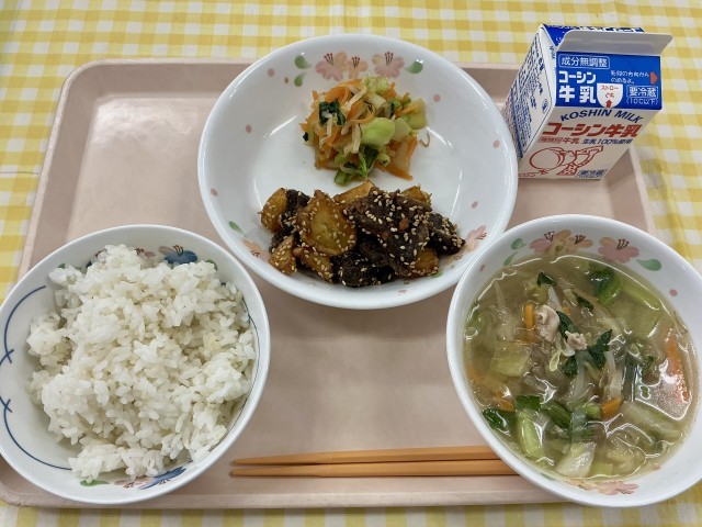レバーは平井小学校で人気のメニューのひとつです。今日は甘辛いタレに絡めて、ごまをあえています。初めてたべる1年生も、「おいしいからおかわりしちゃった♪」と、嬉しそうに報告してくれました。