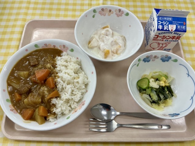 今日は平井小学校で大人気のカレーライスです。給食前から、「やったー!今日はカレーだ♪」と、子供達は嬉しそうな声をあげていました。1年生もニコニコしながら「おいしい〜!」の大合唱。カレーの人気は今年も不動のようです。