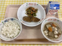 また、今日のおひたしには油揚げが入っています。油揚げとにんじんを別煮して調味しているので、甘辛い味がよくしみ込んでいます。かめばかむほど味わい深いおひたしで、「野菜は苦手だけど今日は食べられた!」と話してくれた子もいました。