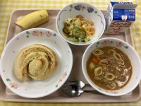 デザートは、子供たちが楽しみにしていたセレクト給食です!今回は、アレルギーのある子も食べられる、小麦も乳も卵も使用していない米粉のケーキです。味はメープルとココアの2種類。メープルはメープルシュガーとシロップを使って作っています。やはりココアの方が子供たちには馴染みが深いのか、2:1ぐらいの割合でココアの方が多く選ばれましたが、子供たちは自分が選んだケーキを嬉しそうに食べていました♪