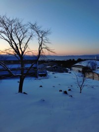 起床まで間もなく。部屋の電気もぼちぼちつき始めました。昨夜は雪が振っていましたか...