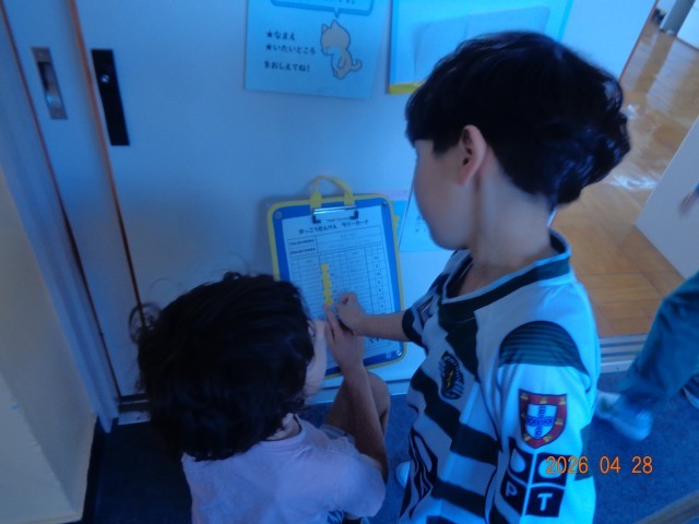2年生が、1年生を連れて学校の中を案内しました。事前に約束した3つの「は」「走らない・入らない(部屋に)・話さない(おしゃべり)」を守って、行動出来ました。2年生は、とても優しく、頼もしかったです。1年生は、学校の中の様子が分かったでしょうか。もっと見たいところや話してみたい人はいましたか。これから、さらに学習していってくださいね。