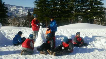 午後は素晴らしい天気の中、スキーゲレンデで雪遊びを楽しみました。レク係が中心となって雪合戦と雪だるま作りを楽しんだ後は、自由にそりを楽しんだり雪像を作ったりしました。子供たちの歓声が雪山に響き渡りました!そして、今日の夜は子供たちも楽しみにしているお土産タイムとなります。みんなどんなものを買うのでしょうか?