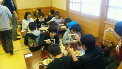 大源太でおいしいお蕎麦と天ぷらをいただきました。子供たちも大満足です。笹団子も無事に出来上がりました。このあと学校に向かいます。