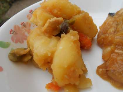 じゃがいもの甘煮 ほっこりと優しい味わいです。 玉ねぎとわかめの味噌汁
