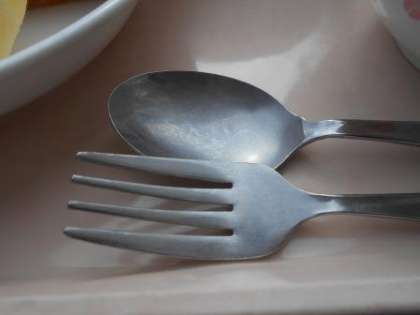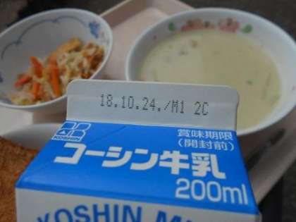 今日の牛乳 今日はスプーンとフォークでいただきました。