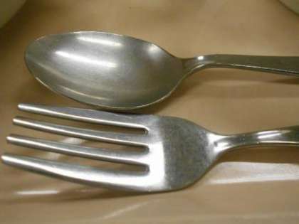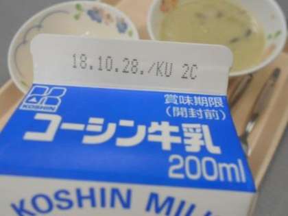 今日の牛乳 今日はスプーンとフォークでいただきました。