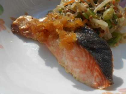 小松菜団子のすまし汁 鮭のおろし玉ねぎがけ