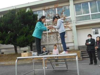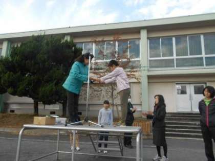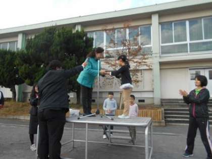 全校朝会で、「環境をよくする絵画コンクール」の表彰を行いました。