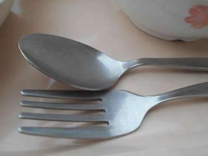 今日はスプーンとフォークでいただきました。