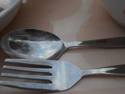 昨日の牛乳 昨日はフォークとスプーンでいただきました。