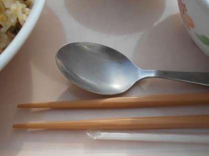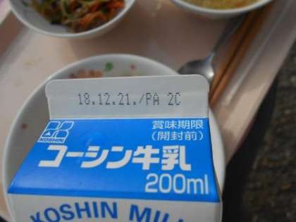 今日の牛乳 今日はお箸とスプーンでいただきました。