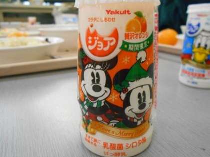 今日の給食では、牛乳のほかにジョアのオレンジ味とジョアのプレーンを選ぶことができました。
