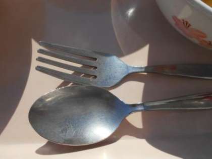 今日はスプーンとフォークでいただきました。