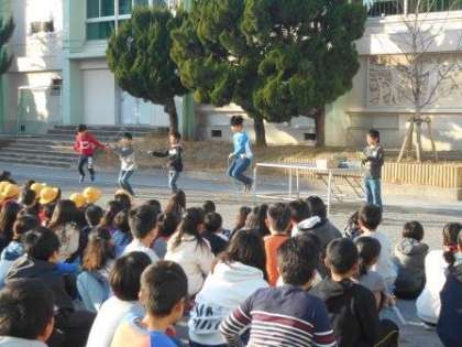 縄跳びの跳び方や、縄の結び方を練習しました。
