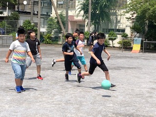 今日の昼休み、校庭で元気よく遊びました。久しぶりに思いっきり走ることができました!