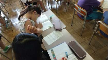 5年生の算数では、比例の学習に取り組んでいます。「どうして比例になるのか」について、理由まで一人一人が考える授業を行いました。