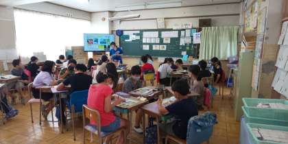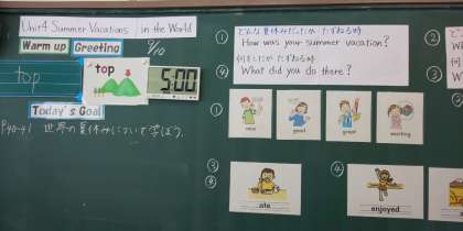 小学校でも、英語の授業が始まっています。今日は、世界の夏休みについて考えていました。ICTを駆使しながら進めています。