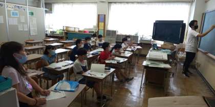 今日も暑い1日でした。おいしい給食を食べたあと、午後の授業も頑張りました。写真は、3年生算数、4年生音楽、5年生理科です。