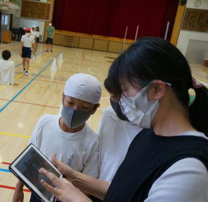 iPadでフォームを確認していますね。