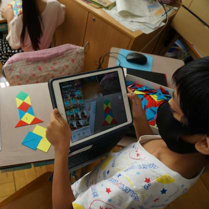 学習用タブレット端末で撮影