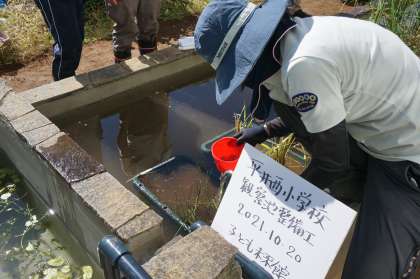 子どもたちも植物や水生動物に興味を持ち、楽しそうに観察していました。