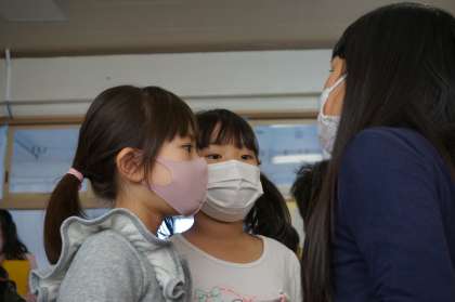 動物について「I like〜」と「I don't 〜」の表現を使って仲間集めゲームをしました。好き同士、そうではない同士に出会ったらグループになっていきます。ゲームのおしまいに、集まった子たち同士で言い合って確認をします。