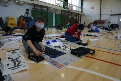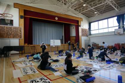 今日から校内書きぞめ大会です!4年生はトップバッターの1.2時間目でした