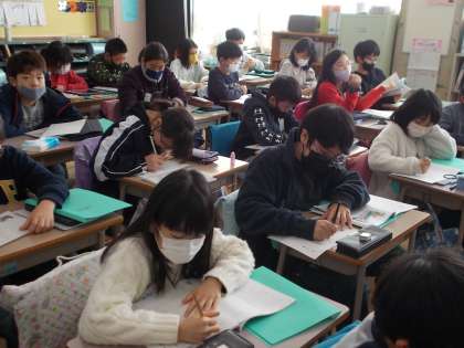 「だれかをきずつける機械ではない」を読んで,これから必ず関わるであろう「ネット社会」において,どのように判断し行動するべきかを考えました。ネットいじめの加害者にも被害者にもならないようにするためには,一人一人の「正義の心」が必要。教材文の主人公はそのようにまとめていました。どんな時でも「相手に対する思いやり」や「想像力」をもつことで,誰もが心地よく生活できる社会に近付いていくと思います。