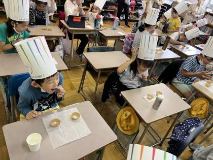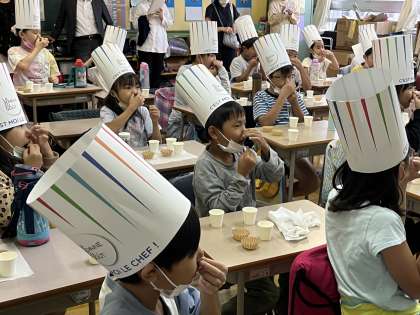 見た目が同じ粉を少し舐めてみたり、鼻をつまんだままグミを口に入れて噛み、鼻から手を放してちがいを楽しんだりと、目を輝かせながら、ときに歓声を上げながら楽しんで参加していました。