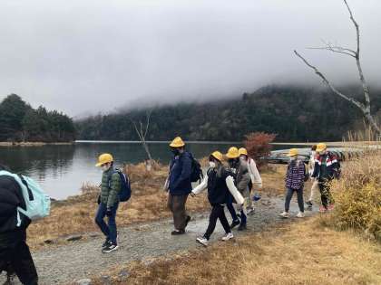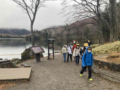 湖畔の風景を楽しみながら、湯滝に向かいます、