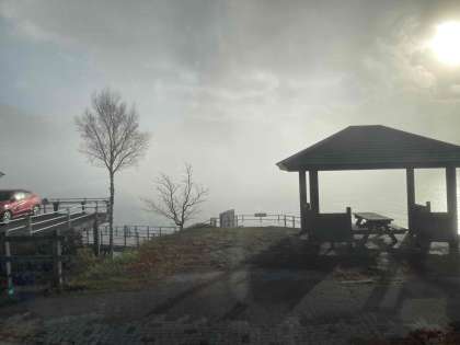 華厳の滝・いろは坂の周辺は、この時間も霧に包まれています。