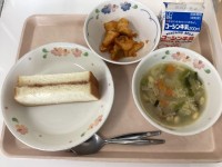 今日の給食は、「ごはん、牛乳、ししゃものなんばんづけ、はるさめとキャベツのあえもの、たまねぎとじゃがいものみそしる」です。