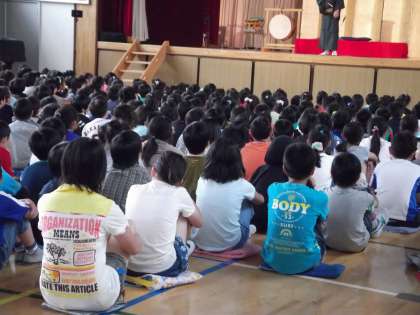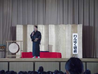 3〜4校時は、体育館で『わんぱく寄席』を楽しみました。