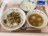 ハッシュドポークライス 牛乳・ごぼうのチップサラダ リンゴ寒天ポンチ