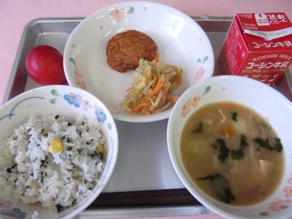 今日の給食 わかめとコーンのまぜごはん 2011/07/12