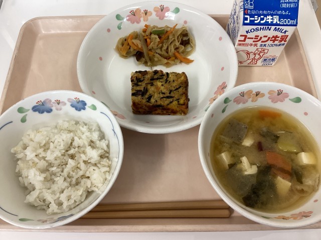 ごはん、牛乳、擬製豆腐、切り干し大根の含め煮、さつまいも豚汁
