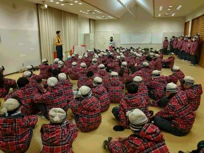 スノーシュー体験の前、ミーティングルームにおいて、担任の先生方から子供たちにお話がありました。内容は、食事の後の片付けのこと、部屋の荷物の整頓のこと、落とし物のことなどの苦言です。子供たちに少し浮わついた気持ちがあったのかもしれません。これを機会に気持ちを引き締め、残りの時間を楽しく過ごしてほしいです。