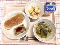 きのこごはんと卵焼きなど、和食の献立を味わいました。給食の卵焼きは、半熟に加熱し...
