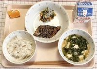 ・ごはん ・鮭の南部焼き・野菜のしらす和え ・みそ汁・清見オレンジ ・牛乳魚は三...