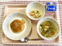 ・チリビーンズドッグ・押し麦のスープ・フルーツヨーグルト・牛乳1年生は、入学して...